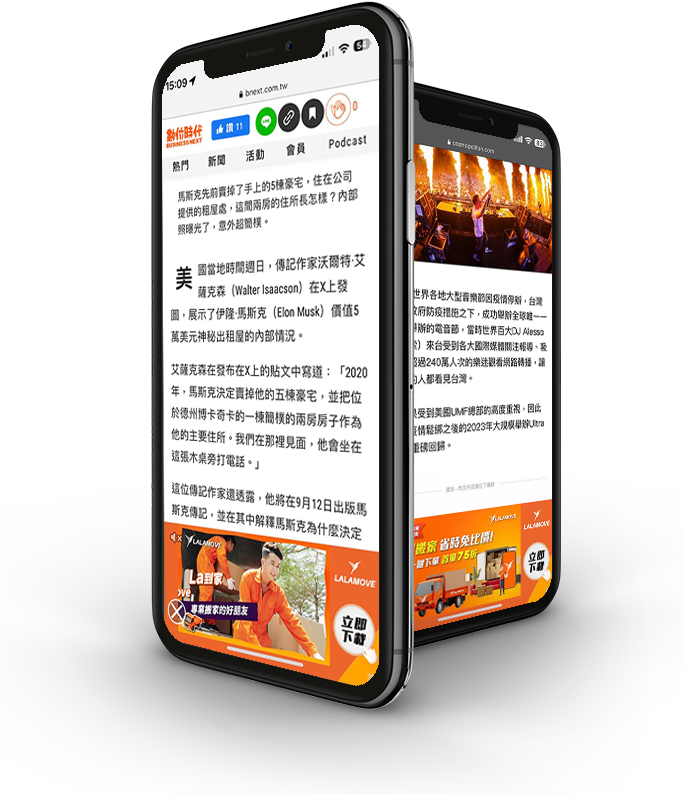 百大知名網站、APP與全球行動網路合作串連,關鍵評論媒體集團流量,打造精準穩定的DSP平台,協助品牌取得致勝先機,開啟全新契機。