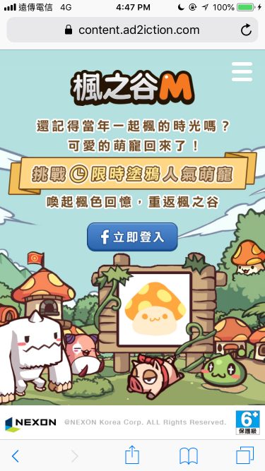 宣傳即將上線的手遊版楓之谷M,以前導互動網頁,喚醒老玩家回憶,也引發新玩家的注意。